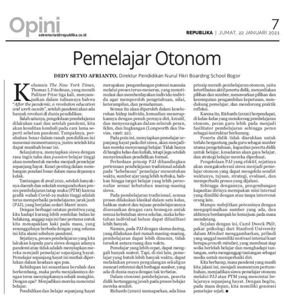 13. Opini “Pemelajar Otonom” dilaman koran nasional Republika, 22 Januari 2021. Bisa juga dibaca disini atau disana.