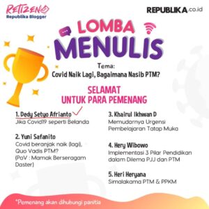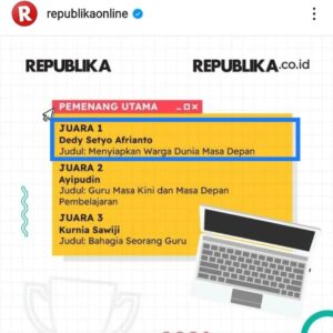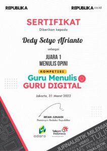 13. Juara 1 Lomba Menulis Republika “Guru Menulis Guru Digital”. Tingkat Nasional. April 2022