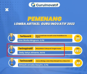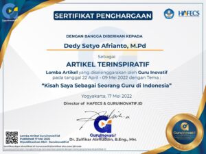 14. Artikel Terinspiratif Pemenang Lomba Artikel Guru Inovatif 2022. Diselenggarakan oleh https://guruinovatif.id. Tingkat Nasional. Mei 2022.
