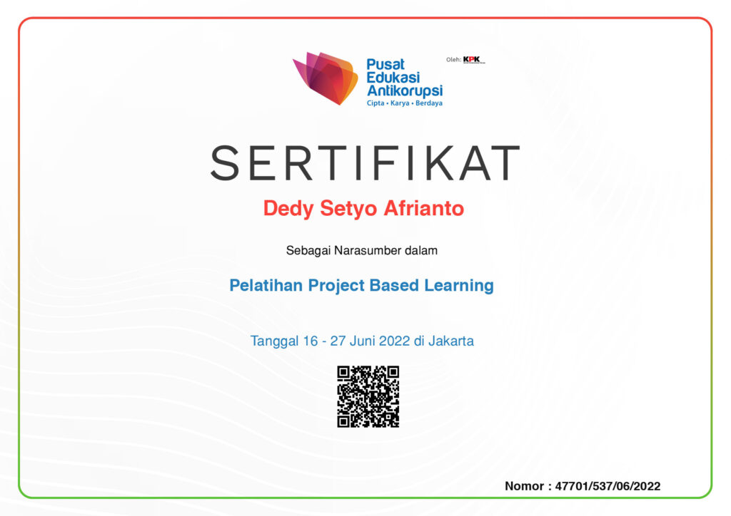 – Fasilitator Pusat Edukasi Antikorupsi Komisi Pemberantasan Korupsi (KPK) tahun 2022
